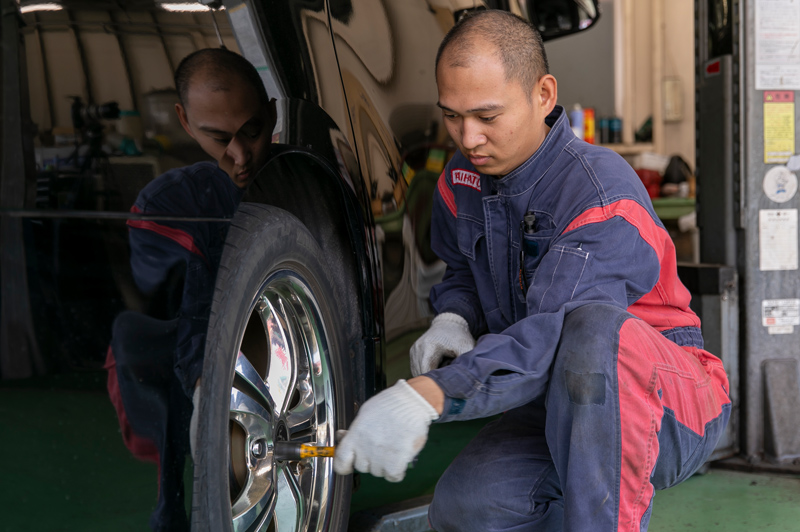 基本的にお客様のお車を扱うのはこのプロの整備士のみです。